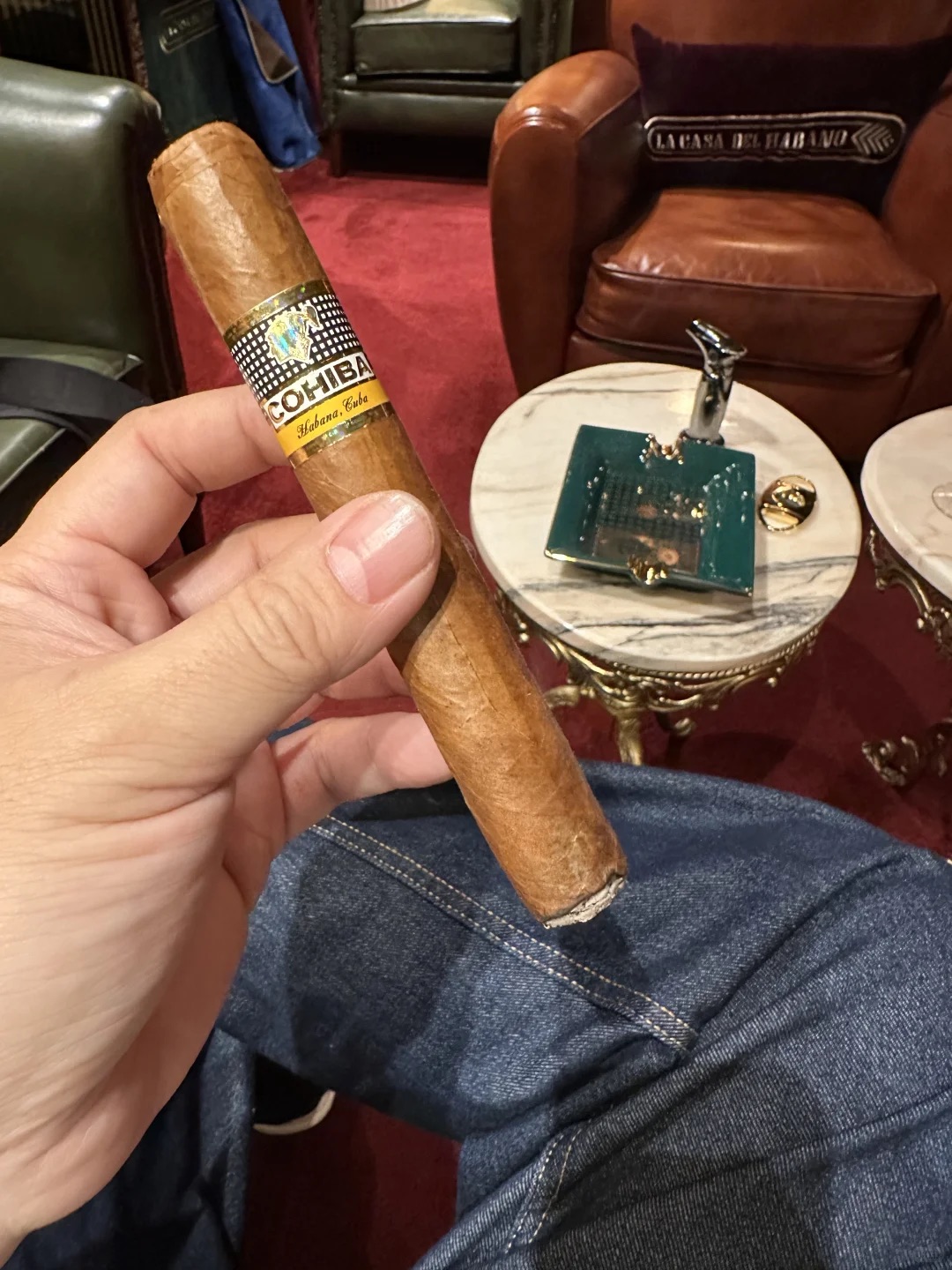 这一年多来,我抽过不少于150根雪茄,从古巴到多米尼加,从新手款到冷门小众,慢慢摸索出自己的节奏与偏好。今天终于决定,给自己一个仪式感——专程来到 La Casa del Habano(LCDH)店里,在最合适的环境下,郑重地点燃这支被无数茄客奉为“古巴特级罗布图标杆”的世纪六。点火那一刻,我是带着敬意的。