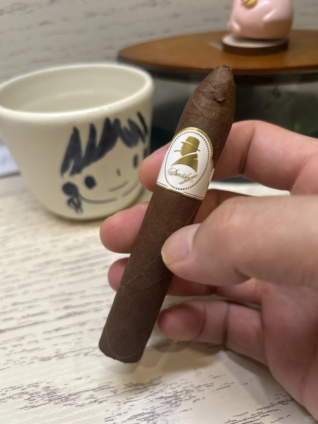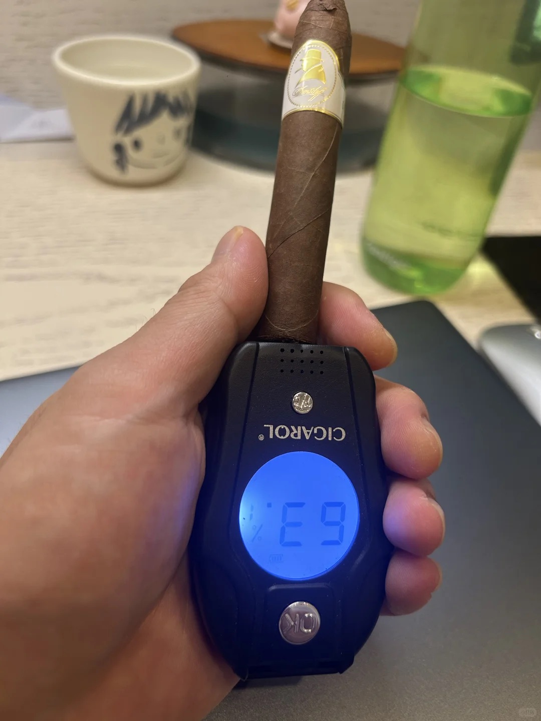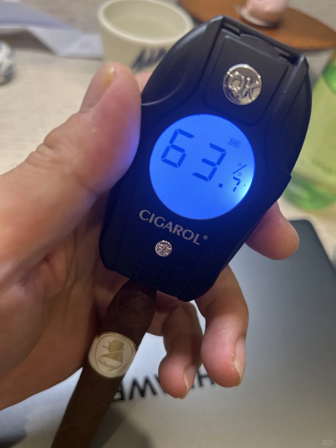Davidoff Winston Churchill 长114mm,环径46,短小却带着绅士般的气场,正如茄标上的丘吉尔。点燃的一刻,就像在和一位衣着考究的英国老先生打招呼,稳重、内敛,又暗藏故事。这支到了没养湿度63%,从后期的持灰来看确实湿度不均匀,如果在柜子多放段时间把湿度稳定稳定吃味应该更好,但是想着给大家早点带来测评报告就先干了!