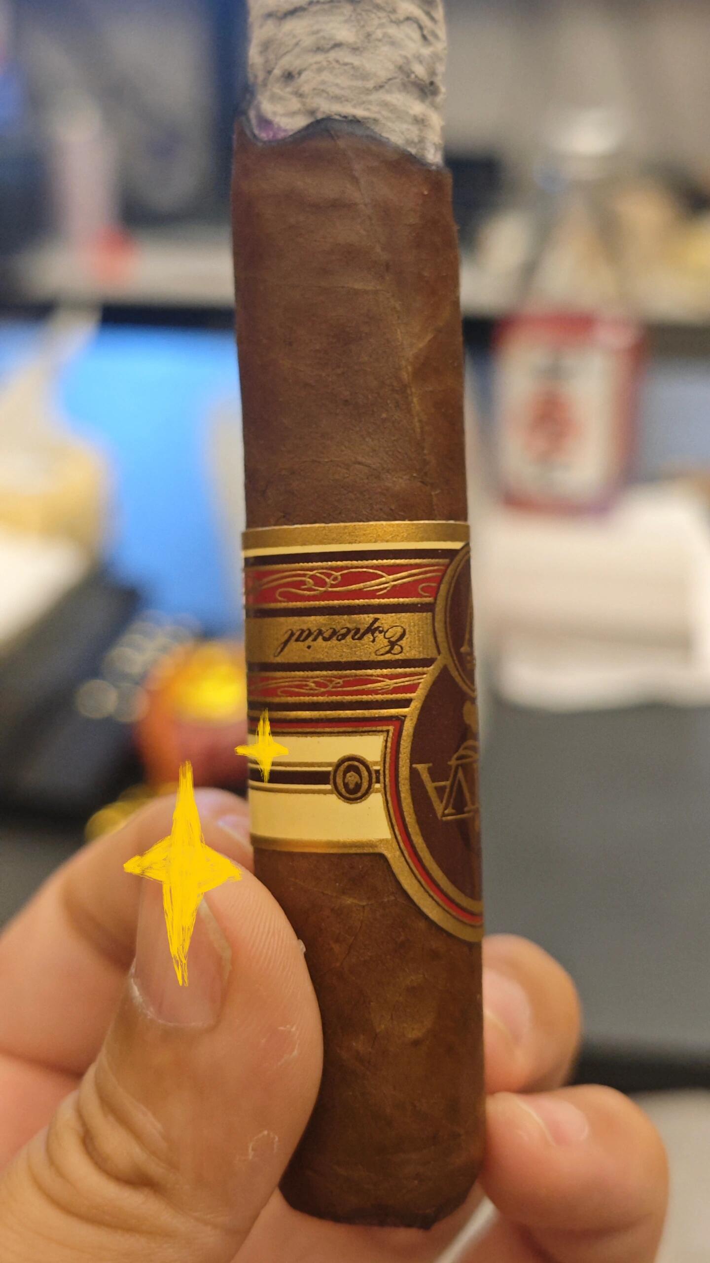V有不同的型号,风味和强度也略有不同,这次是Serie V Melanio Double Robusto(双罗布图),这款属于V系列里的“完美平衡点”。前段是黑巧克力、木头和干草香,中段交织着咖啡、香料和皮革,尾段带出微微的甜感和胡椒余韵。整体属于中至中强,抽起来非常稳,不会压舌。