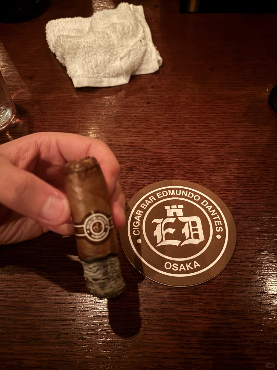 开始的环境和体验都还OK 看完雪茄单以后价格我们也觉得都还满意 就让服务员把雪茄拿过来确认一下状态准备开抡 结果我们刚抽上 有意思的事情就来了 服务生过来跟我们说 必须每一个人点一杯饮品 如果不点的话也要收取1500日元的低消 因为本身座位费一个人就是2000日元了 这个“低消”收的我们确实觉得有点不合理但是本着“来都来了”的心理 毕竟抽茄也不可能不喝东西 一人点了一个单杯威士忌