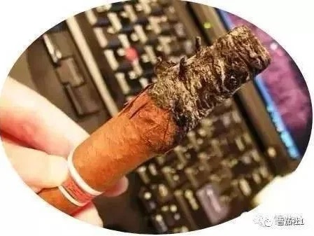 爆头型燃烧:当雪茄保存不理想,过于干燥时,容易出现这种情况。表现为雪茄在抽的过程中茄衣爆裂,头部像被炸开一样,抽的时候会有小的烟灰坠落。(图六)