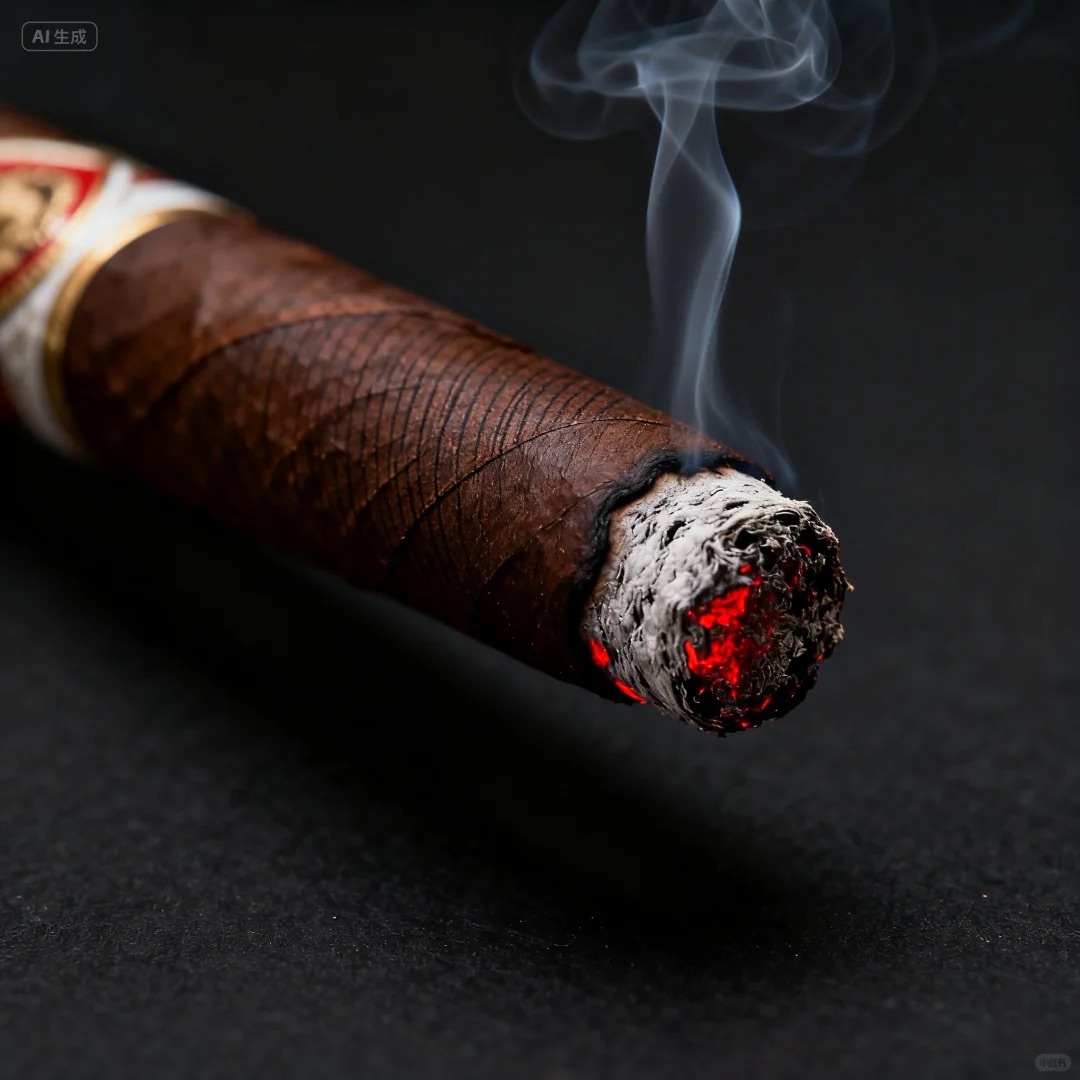 烟灰灰白细腻:燃烧良好的雪茄产生的烟灰应该是灰白色的,质地细腻紧实。非古巴雪茄的茄灰通常为纯灰白色,少带黑色,古巴雪茄的茄灰则以白色为主,略带更多黑色,只要白色占主体即可。